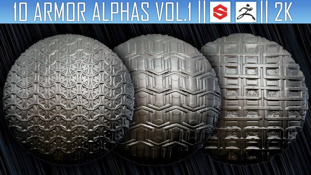 10 Armor Alphas Vol.1 (ZBrush, Substance, 2K)