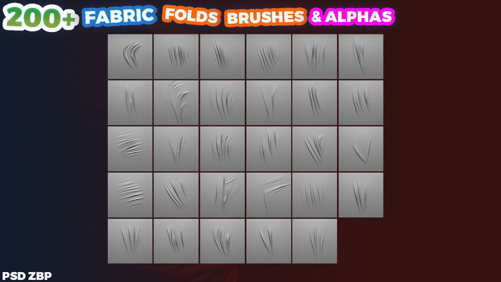 200 Brushes & Alphas for Sculpting Fabric Folds – ZBrush Toolkit