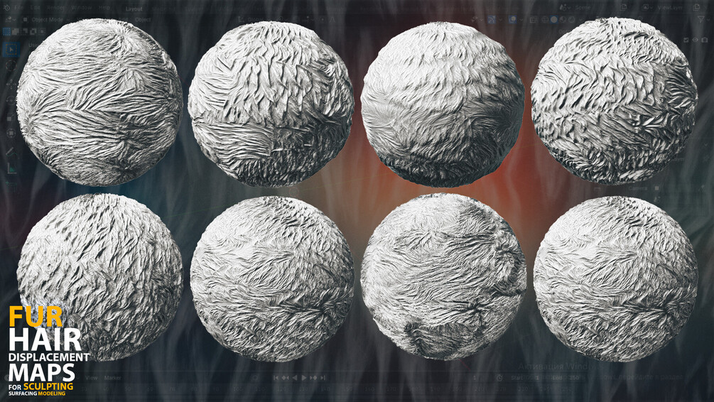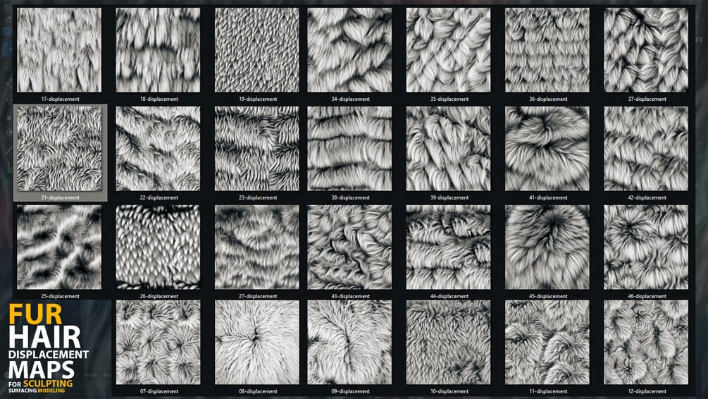 Fur And Hair Displacement Maps (Alphas) For Sculpting, Surface Modeling (Blender, ZBrush)