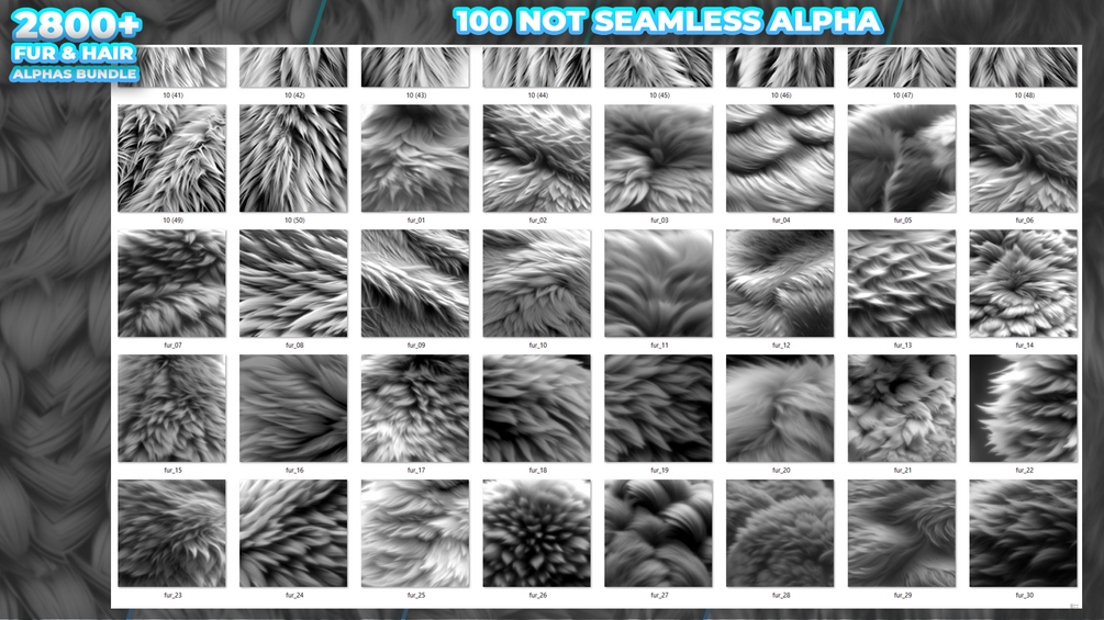 2800+ Fur & Hair Alphas (Displacement Maps) BUNDLE for Blender, ZBrush