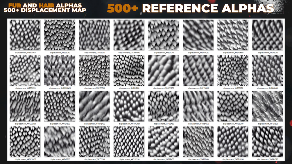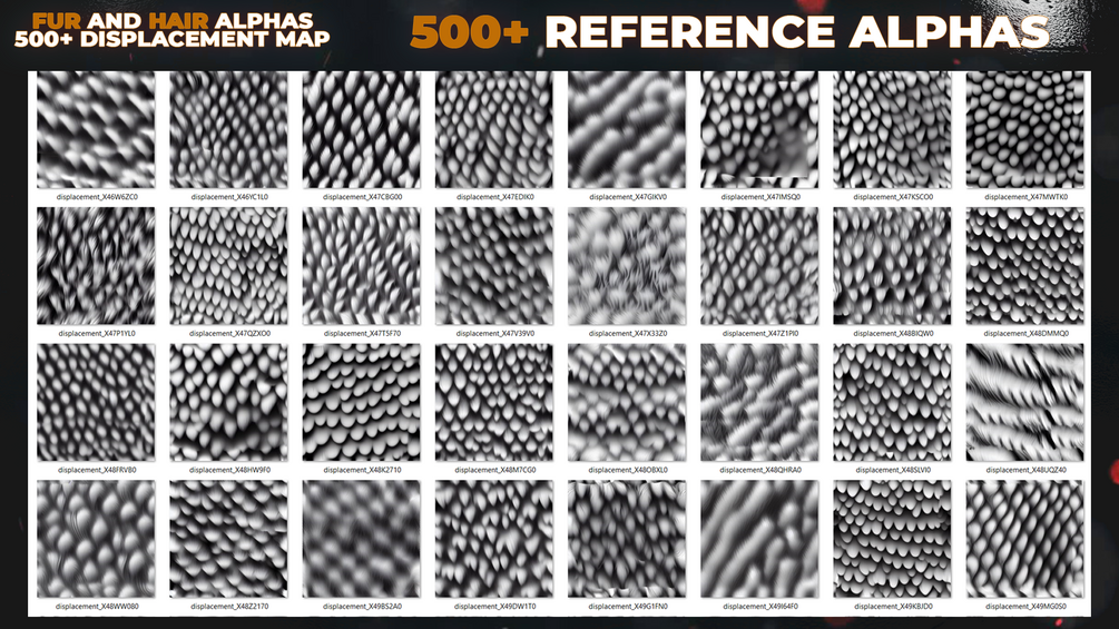 500+ Fur and Hair Alphas (Displacement Maps) for ZBrush, Blender, Substance Painter vol.13