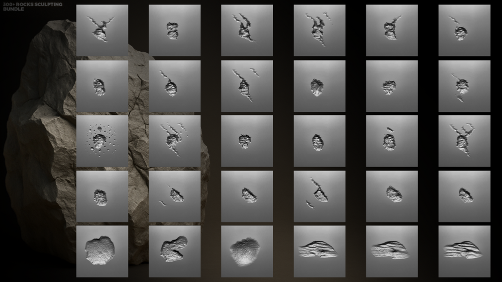 300+ Rock Alpha Brushes – Ultimate ZBrush & Blender Sculpting Bundle