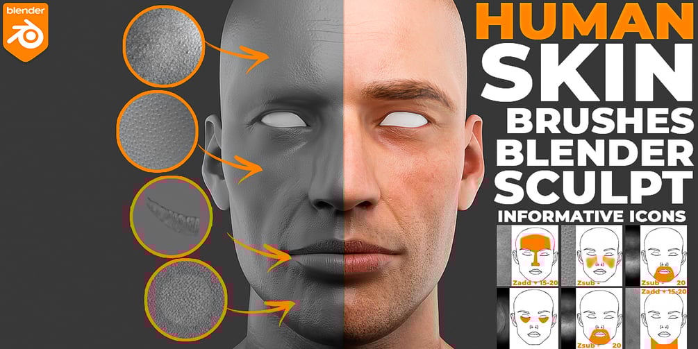 71 detailed brushes for sculpting human skin. Brushes will help you create skin effects on your face in 5 minutes, make a realistic human face.
