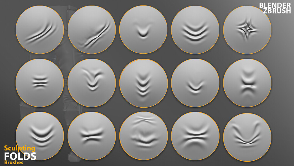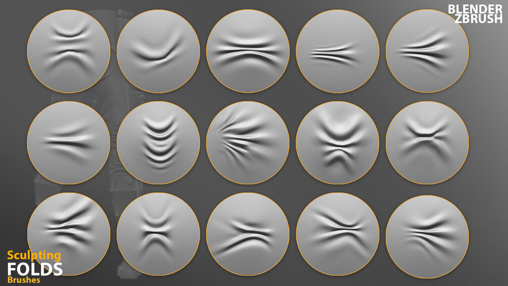 Sculpting Fabric Brushes for Blender, ZBrush. Compression Folds Brushes