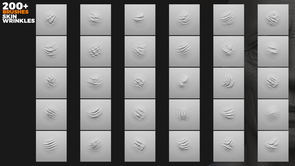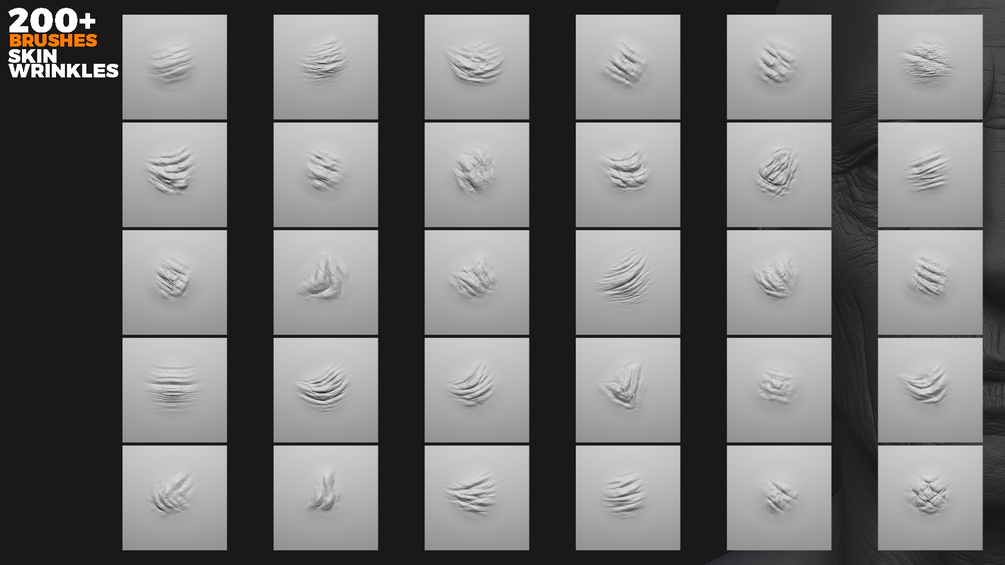 200+ Skin Wrinkles Sculpting Brushes For Blender & Zbrush