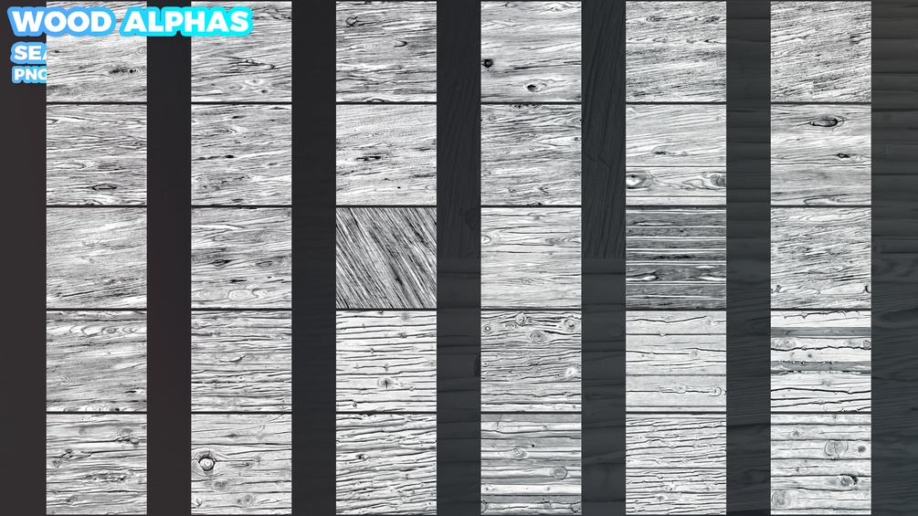 ✅ 300 Seamless Alphas (Displacement Maps) – for effortless, tileable application.