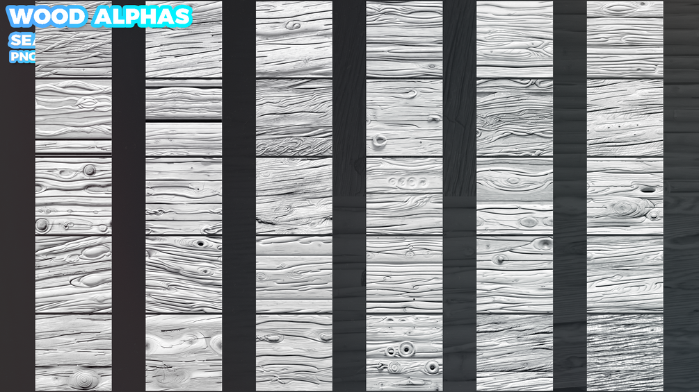 300 Wood Seamless Alphas (Displacement Map) for ZBrush, Blender Vol.13 – The Ultimate Tool for High-Quality 3D Sculpting!